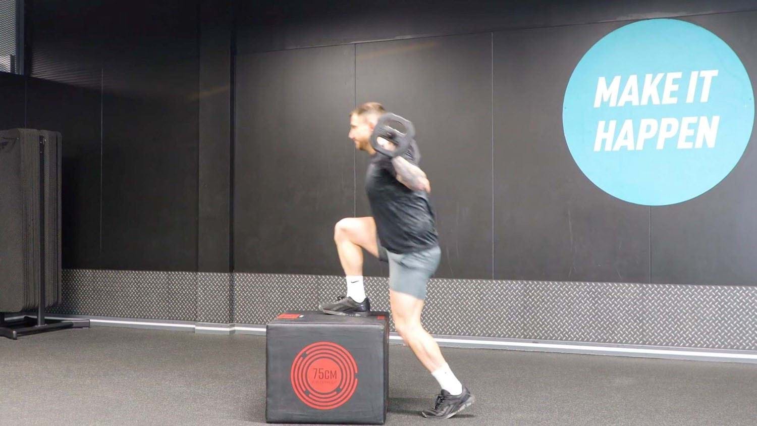 - Choose a height that allows you to perform the step up (and down) in a smooth, controlled movement. Once you've nailed the form and built strength, you can increase the height gradually.