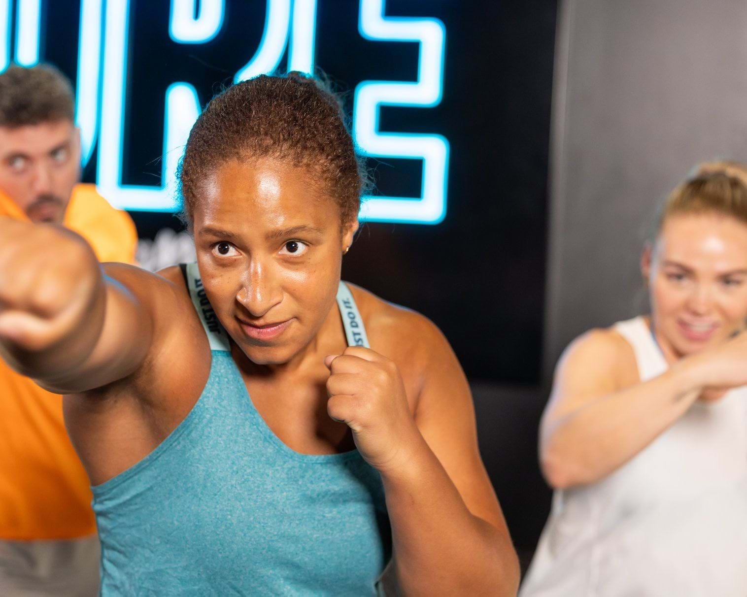 Boxfit is a cardio workout based on the training used for boxing, so it includes skipping, boxing drills including footwork and ab exercises – all focusing on fitness and toning.